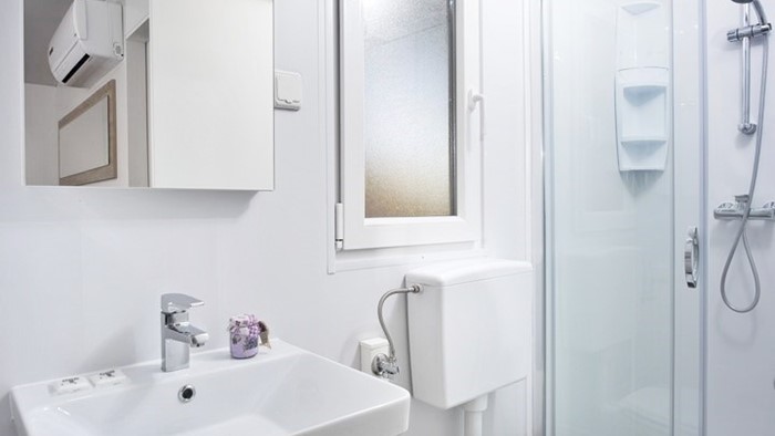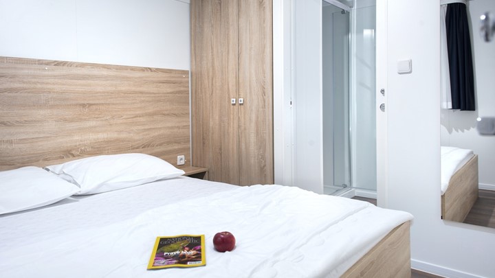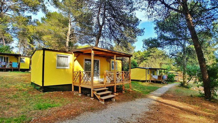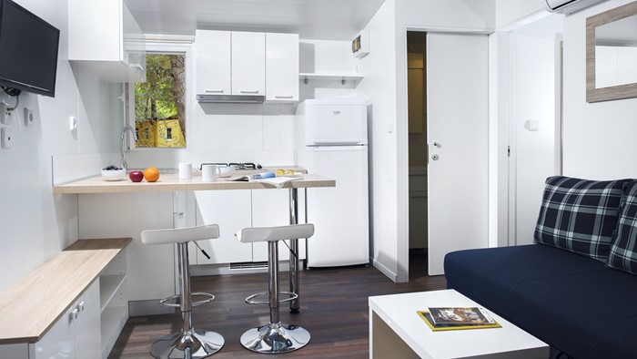 • Ukupna površina: 32 m² • Dimenzije mobilne kućice: 8 x 4 m • Broj ležaja: 4 osnovna + 2 pomoćna • 2 spavaće sobe • Kuhinja / blagovaonica • 2 kupaonice • Natkrivena drvena terasa veličine: 4 x 2,5 m • Parkirno mjesto