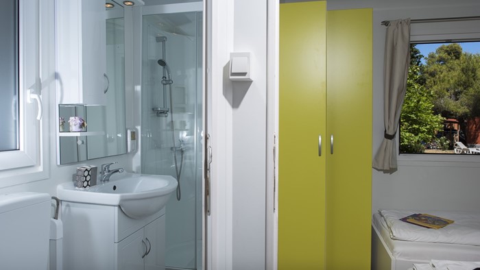 Le case mobili Premium si trovano vicino alla costa, in luoghi bellissimi. Le case mobili Premium si trovano vicino alla costa (più precisamente, si trovano a una distanza da 30 a 100 m dal mare). Tutte le casette mobili Premium possiedono il seguente arredamento addizionale: • forno a microonde • CD/DVD • macchina da caffè • lettini prendisole • superficie totale: 32 m² • dimensioni delle casette mobili: 8 x 4 m • numero letti: 4 base + 2 aggiuntivi • 2 camere da letto • cucina / sala da pranzo • 2 bagni • terrazzo in legno coperto dalle dimensioni: 4 x 2,5 m • posizione: 30 a 100 m dal mare