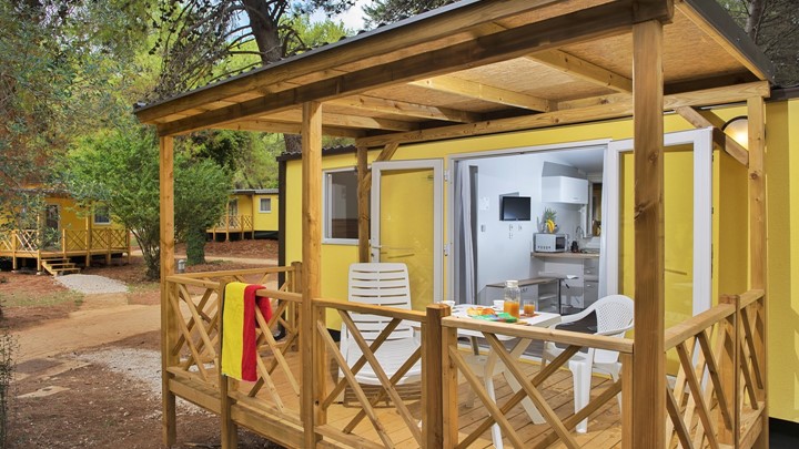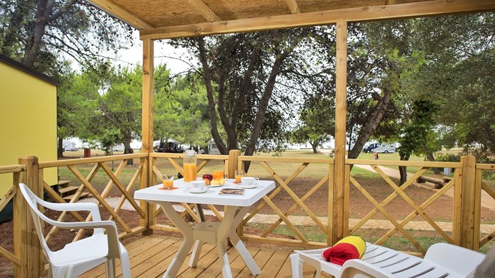 Domki mobilne Premium usytuowane są na ładnym położeniu, tuż obok wybrzeża. Domki mobilne Premium mają bezpośredni dostęp do wybrzeża lub znajdują się w bezpośrednim pobliżu wybrzeża. Podczas pobytu w domkach Premium, goście mogą ze swojego tarasu cieszyć się widokiem na morze, plażę oraz archipelag Brioński. W kempingu Pineta umieszczono 12 domków Premium typu Vanga 32 m2. Wszystkie domki mobilne Premium dysponują sprzętem dodatkowym. Wszystkie domki mobilne Premium są wyposażone w dodatkowe wyposażenie: • kuchenka mikrofalowa • CD/DVD • aparat do kawy • leżaki do opalania • Łączna powierzchnia: 32 m² • Rozmiar domku mobilnego: 8 x 4 m • Liczba łóżek: 4 podstawowe + 2 dodatkowe • 2 sypialnie • Kuchnia / jadalnia • 2 łazienki • Drewniany zadaszony taras o rozmiarach: 4 x 2,5 m • Położenie: obok plaży