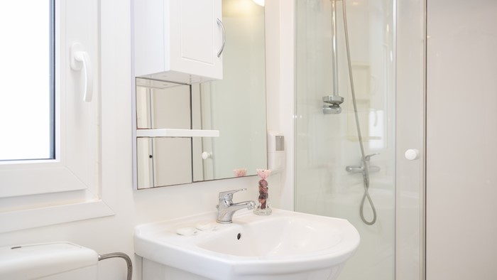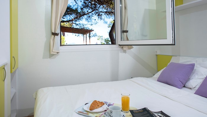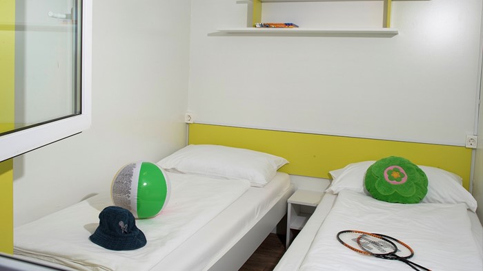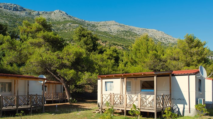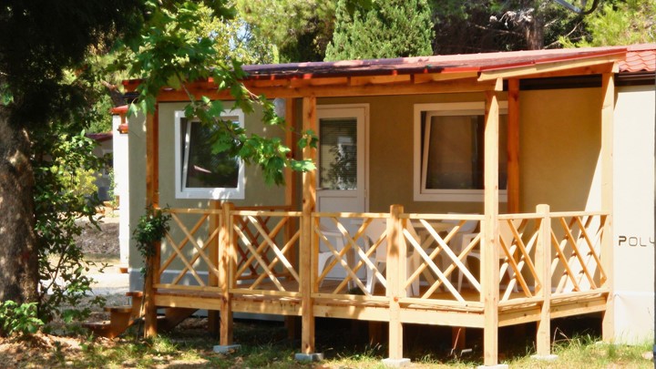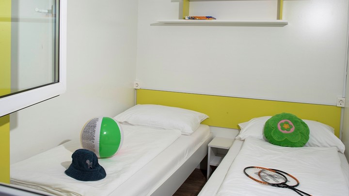Opremljenost mobilnih hišica: • Klima • SAT TV • Jedilnica z mizo in 2 stoloma • Kavč na izvlačenje z 2 spalnimi mesti • Kuhinjska niša • Plinski štedilnik z napo • Hladilnih • Kuhinjski pribor Kopalnica: • Steklena tuš kabina • Umivalnik • WC • Sušilec za lase • Brisače 2 spalnici • 1. spalnica z zakonsko posteljo • 2. spalnica z ločenimi ležišči • Posteljnina